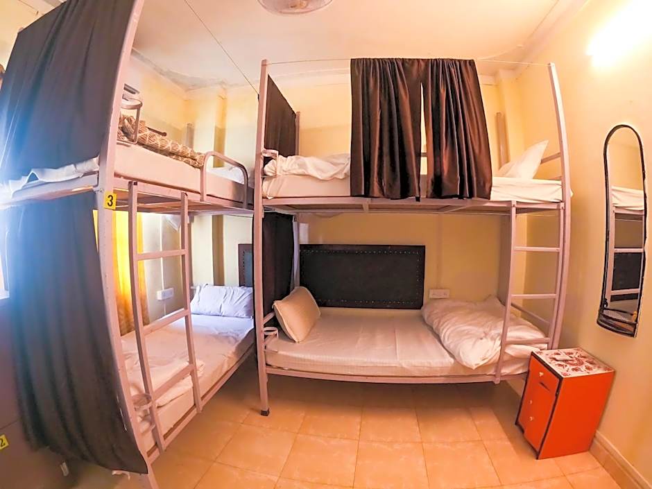 This bed in dormitory has a tile/marble floor and air conditioning.