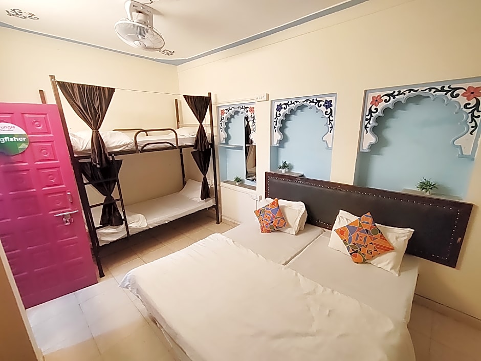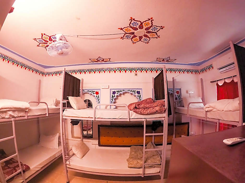 This bed in dormitory has a tile/marble floor and air conditioning.